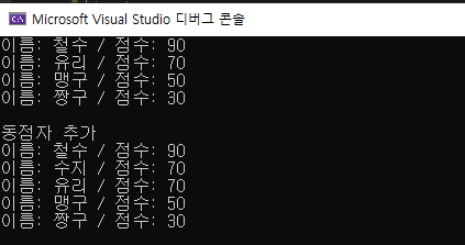 //동점자끼리는 이름 기준(오름차순)으로 정렬