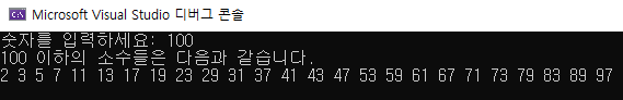 cout << N << "이하의 소수들은 다음과 같습니다.\n";