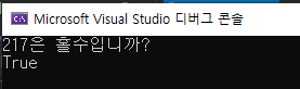 PrintString("217은 홀수입니까?");