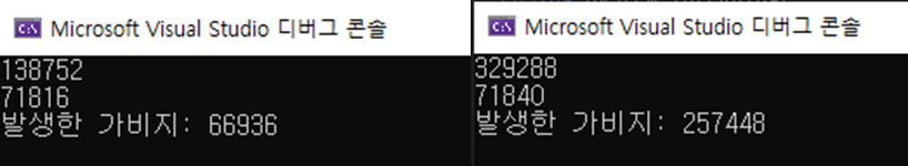 Console.WriteLine($"발생한 가비지: {before - after}");