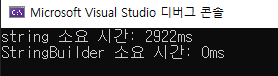 Console.WriteLine($"StringBuilder 소요 시간: {sbTime}ms");
