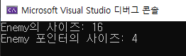 cout << "Enemy의 사이즈: " << sizeof(enemy) << endl;
