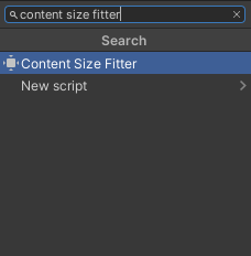 UI 작업을 하다보면 생각보다 크기 조정에 많은 시간을 소모하게 됩니다. 특히 새로운 UI 추가로 인해 기존 UI의 크기들을 일일히 조절하려면 불편하기 이를 데 없습니다. 이러한 부담을 줄이기 위해 유니티에서는 Content Size Fitter는 UI 크기 자동 조절 수단을 제공하고 있습니다. Content Size Fitter 컴포넌트는 Inspector 창에서 검색하여 추가할 수 있습니다.