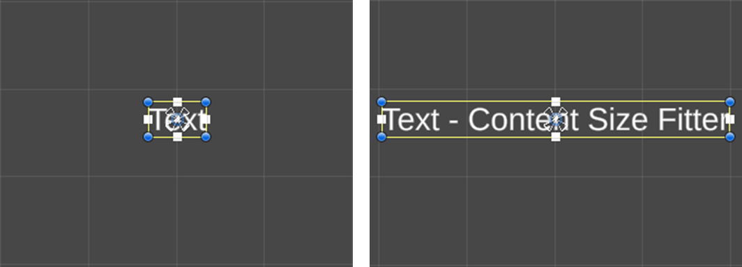 텍스트에 Preffered Size 옵션을 사용하는 경우 Rect Transform에서 피벗값을 조절하여 기준을 정할 수 있습니다. 피벗의 x값이 0.5일 경우 사진 4처럼 양쪽으로 늘어나고, 피벗의 x값을 0으로 설정할 경우 사진 5처럼 텍스트 길이가 오른쪽으로만 늘어나게 만들 수 있습니다.