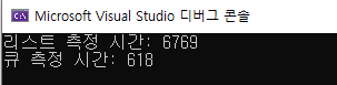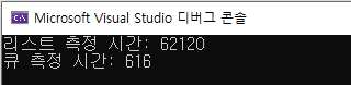 Console.WriteLine($"큐 측정 시간: {watch.ElapsedMilliseconds}");